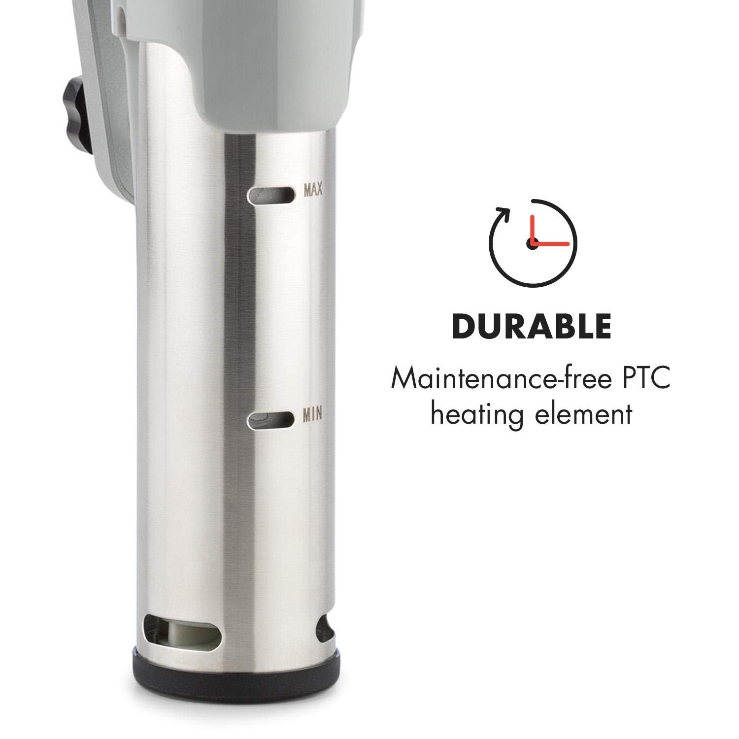 Klarstein Quickstick- Sous-Vide Garer, Präzisionskochtopf, Schongarer, 1300 Watt, Timerfunktion, 3D Circulating, 0-95 °C, LCD Touch-Display, wasserdicht, bis 20 Liter, flex, silber